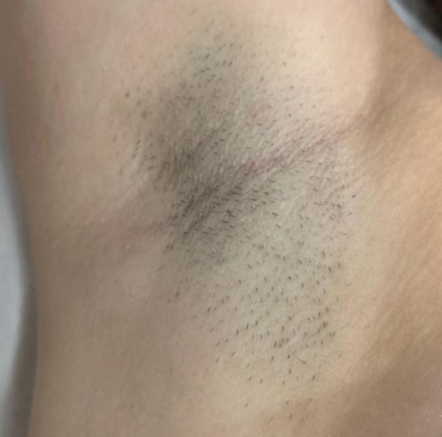 Before / After – resultaat na 1 sessie laserontharing (zichtbare haarreductie en vertraagde haargroei.)